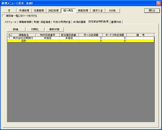 住宅資金貸付特別条項を利用する債権者は,この画面に一覧表示されます。